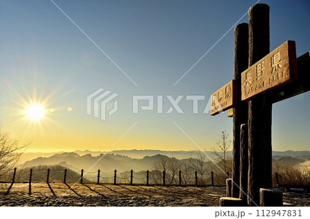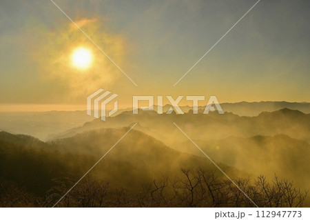軽井沢旧碓氷峠見晴台から日の出と妙義連峰