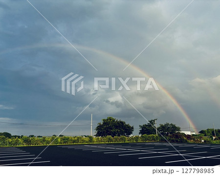 梅雨の関東平野にかかる虹