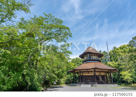 三重県伊賀市 夏の伊賀上野城内にある松尾芭蕉生誕300年を記念して建てられた俳聖殿