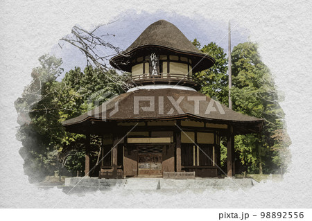 水彩画風 上野公園 俳聖殿 三重県伊賀市