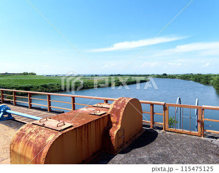 中の島公園連絡橋から関宿にこにこ水辺公園方面の風景