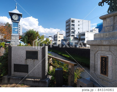 松本市街(女鳥羽川 千歳橋 大名町通り 時計 川)