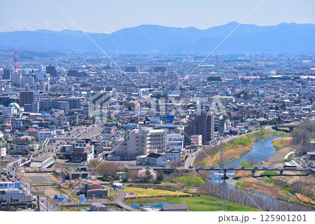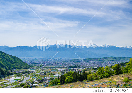 《長野県》松本市城山公園からの展望 残雪の北アルプスと松本盆地