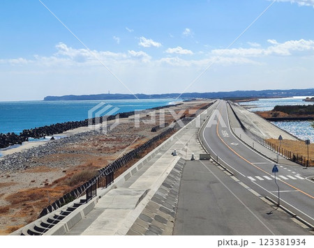 太平洋と松川浦の間を走る直線道路「大洲松川浦ライン」
