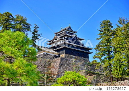 晴れた日の新緑がきれいな島根県松江市の国宝松江城