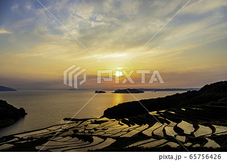 夕陽に染まる美しい土谷棚田 長崎県松浦市