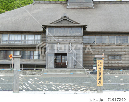 北海道 国指定重要文化財 旧花田家番屋の前のにしん歴史文化公園