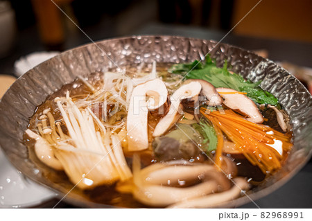 和食、鍋物、アワビと松茸の鍋料理