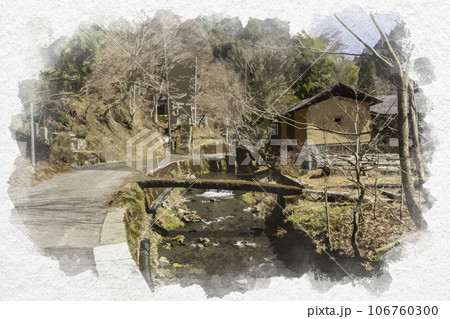 水彩画風 智頭宿 板井原集落 板井原ふるさと館 鳥取県八頭郡智頭町