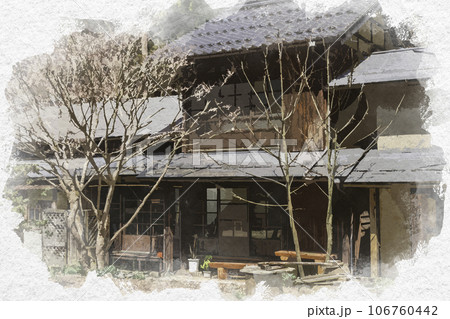水彩画風 智頭宿 板井原集落 藤原家住宅 鳥取県八頭郡智頭町