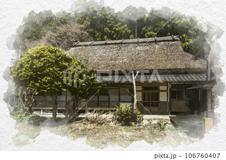 水彩画風 智頭宿 板井原集落 藤原家住宅 鳥取県八頭郡智頭町