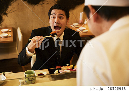 お寿司を食べるビジネスマン