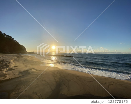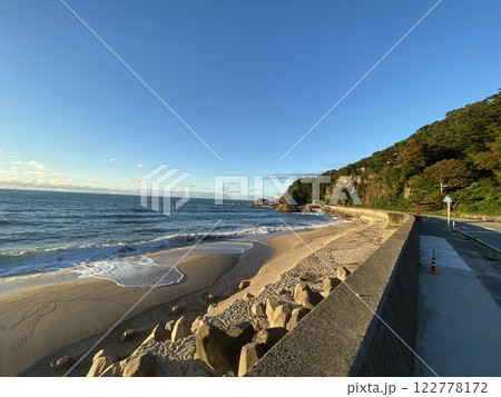 海里より板貝海水浴場を望む 村上市板貝 日本海