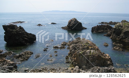 海里より車窓を望む 鷹巣岩 鷹ノ巣岩 屏風岩 村上市板貝 日本海