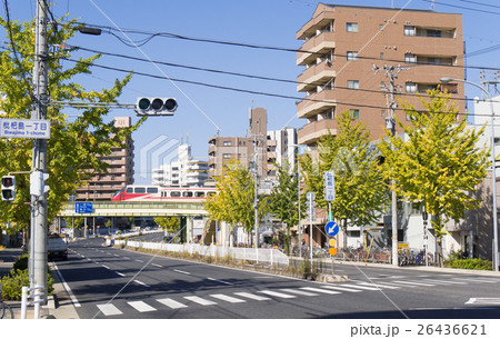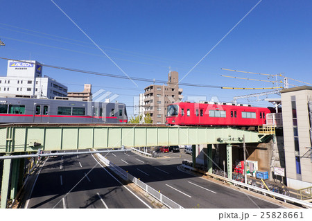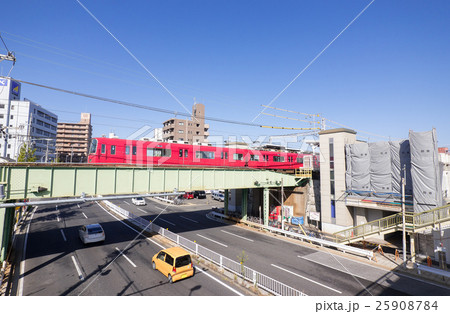 名古屋市西区枇杷島都市風景 名鉄名古屋本線 東枇杷島駅付近と県道67号線