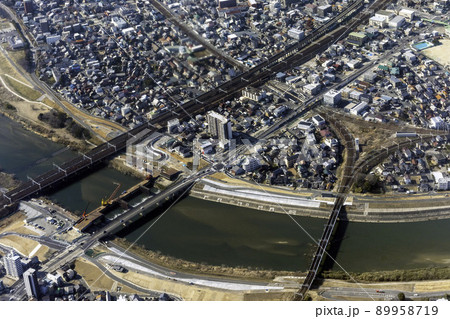 名古屋市西区・枇杷島・都市風景 名鉄名古屋本線 庄内川橋梁