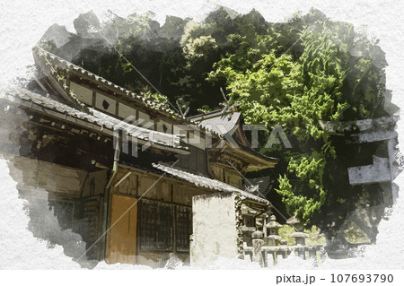 水彩画風 祝田神社 本殿 兵庫県姫路市