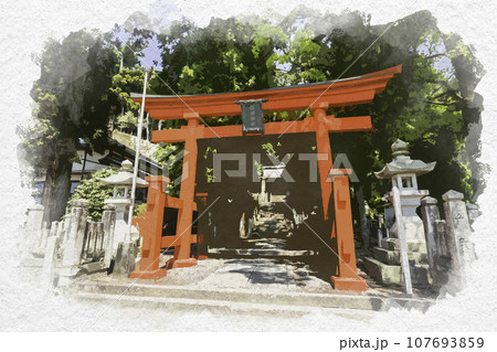 水彩画風 祝田神社 鳥居 兵庫県姫路市