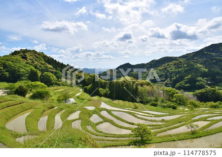 日本の岡山県美咲町の大垪和西の棚田の美しい風景