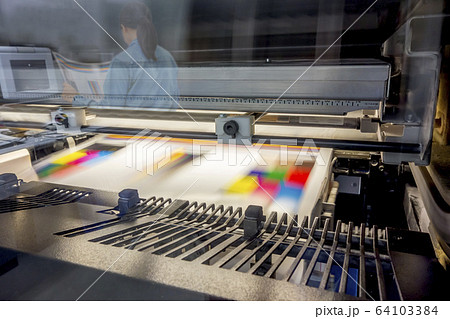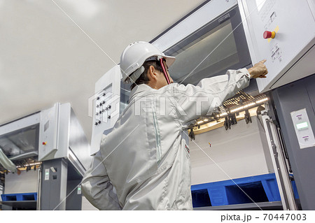 枚葉オフセット印刷機を操作する男性1人の後ろ姿