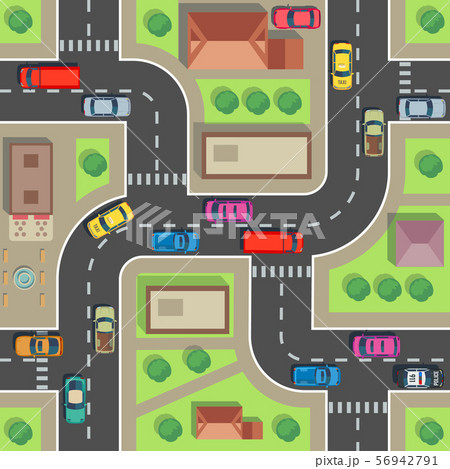 Seamless city map. Top view building and street with cars and trucks. Urban plan vector endless