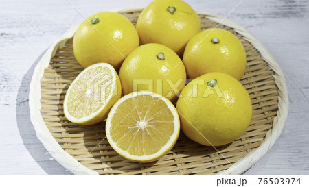 宮崎県産の日向夏(苦みのないグレープフルーツのようなさわやかな甘みをもつ品種)(日本産)、4月撮影