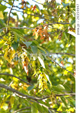 自然 植物 クマシデ、茶色く色づいた翼つきの実が、風が吹くたびハラハラと飛んでゆきます②