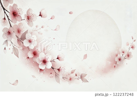 桜の花とエナガの水彩イラスト。(ベクター。レイアウト変更可能)