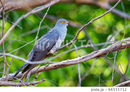 Common Cuckoo or Cuculus canorus perches on branch