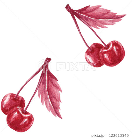 Simple seamless pattern with cherries on a branch. Hand drawn berries drawing with monochrome watercolor. Illustration isolated from background. Perfect for textile, packaging of tincture and liqueur