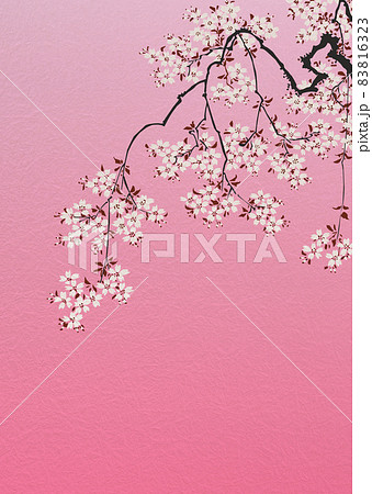 枝垂れ桜と花びら舞う背景のリアルイラスト|春の景色