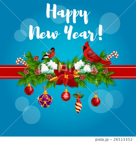 Winter festive seamless border with red cardinal birds. Vintage style illustration. Christmas time decor seamless border with garden birds, poinsettia, pine twig, eucalyptus, berries.