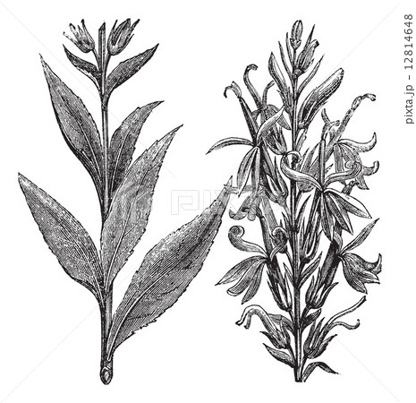 Cardinal Flower or Lobelia cardinalis vintage engraving