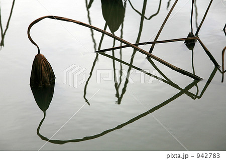 水面に浮かぶ蓮の花托 北安曇郡池田町