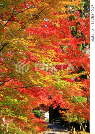 滋賀県 紅葉の大池寺 枯山水の蓬莱庭園を眺めるご夫婦