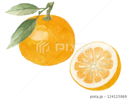 水彩で描いた橙 ダイダイ 橙皮 トウヒ