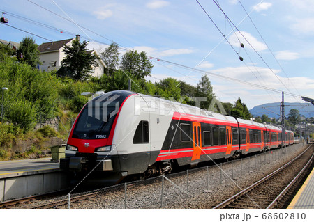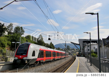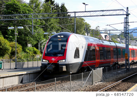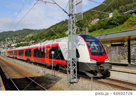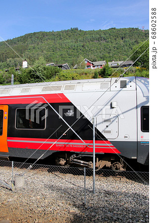 ノルウェー ノルウェー鉄道 ベルゲン線のヴォス駅 停車中の電車 先頭の三両