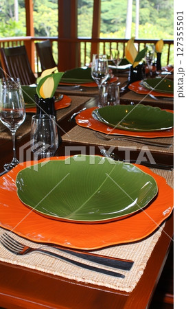Elegant Green Orange Leaf Plates Table Setting Tropical Decor food home life view place party style