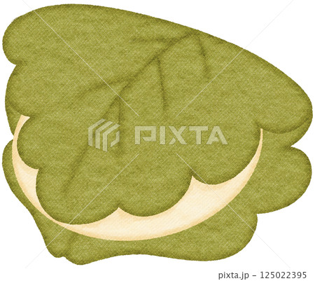 柏餅手描き筆書きイラスト 白黒,モノクロ,単色