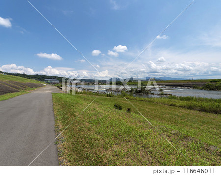 夏の大和川柏原堰堤の風景