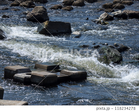 石が並べられた河川の自然浄化施設