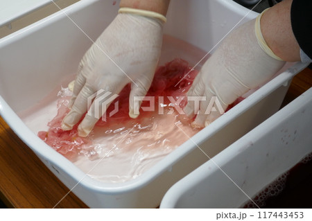染色道具チャンチンを持つ手