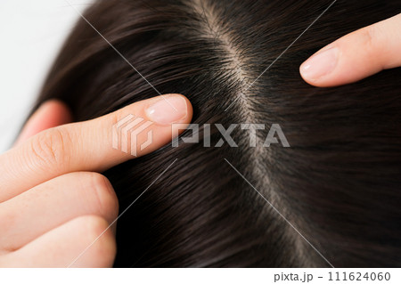 美しい黒髪の生え際の写真