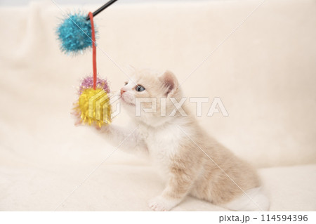 猫じゃらしで遊ぶ仔猫