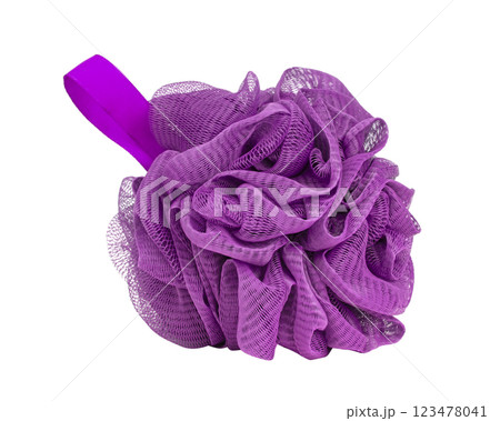 Shower violet sponge soft fluffy for bath isolated on the white background