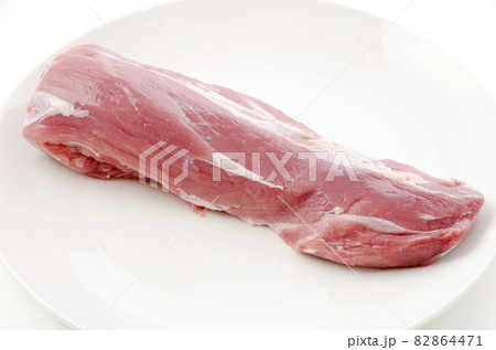 Fresh lamb tenderloin fillet meat, raw loin mutton isolated on white background. top view