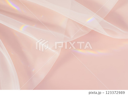 淡いピンクの下地に柔らかい透ける布と光の反射の背景素材(AI生成画像)