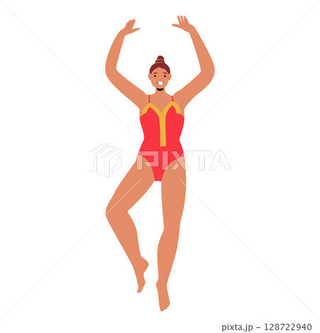 Slim woman dancer wearing gymnastics costume standing in flexible position isolated on white