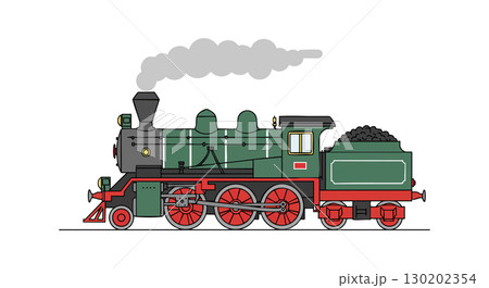 Vintage green steam locomotive with coal tender vector illustration transport design