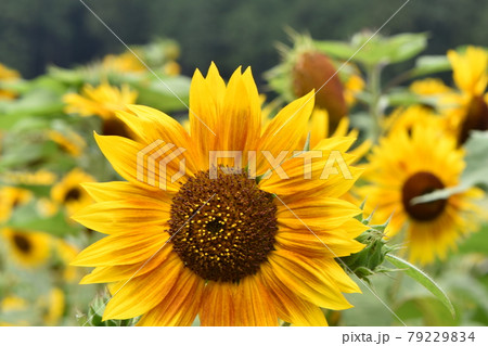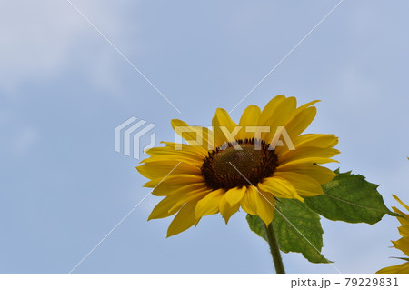 青空に向かって咲く可愛いひまわり